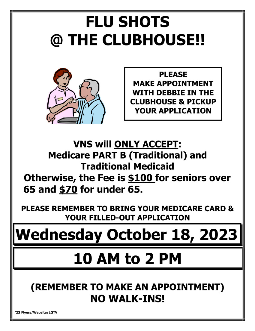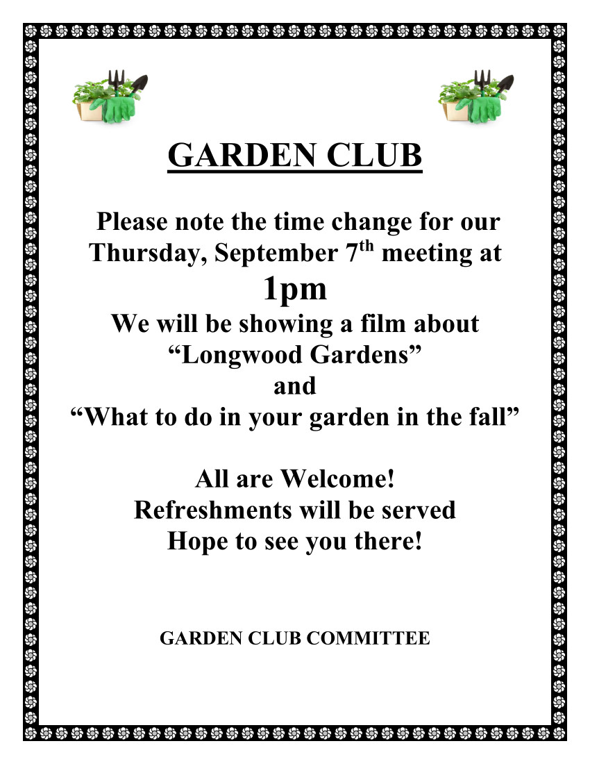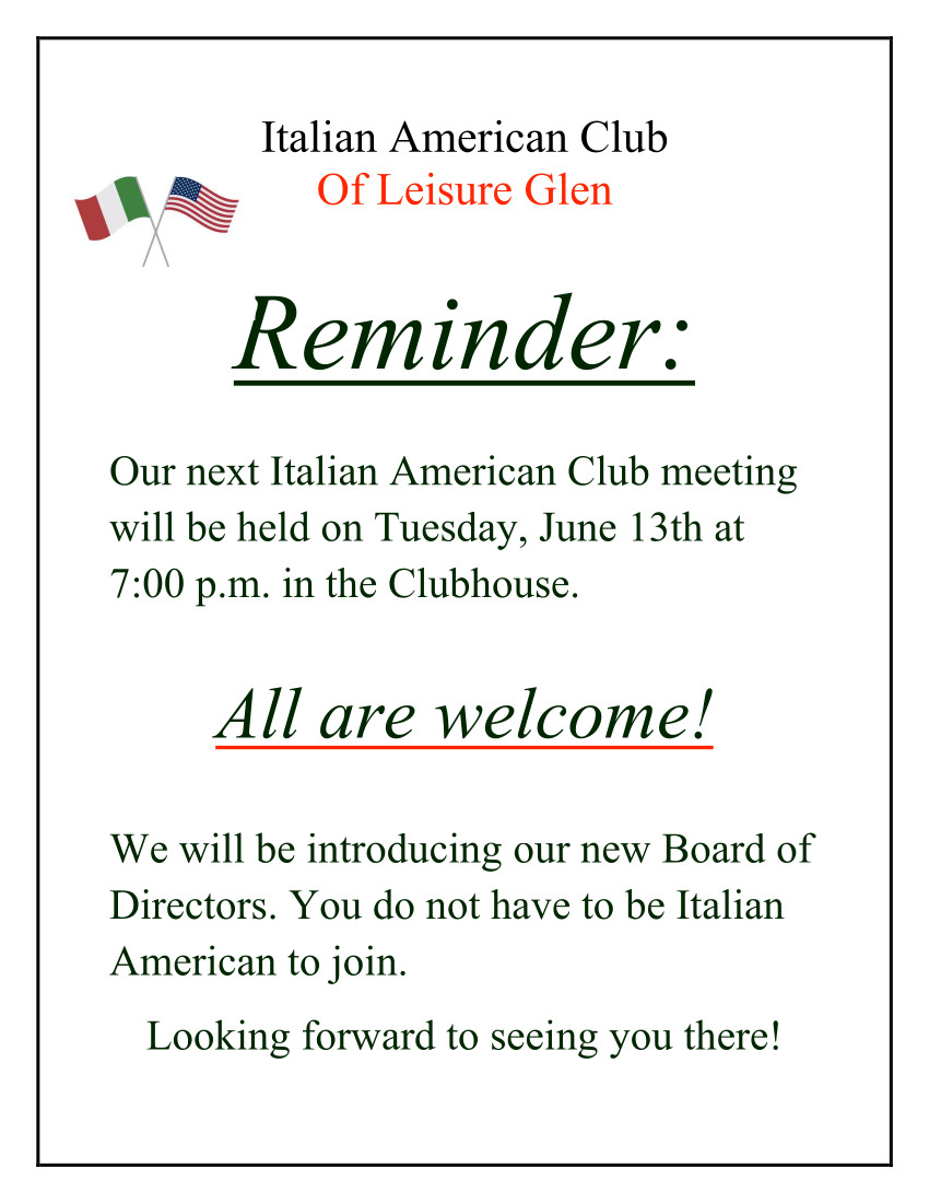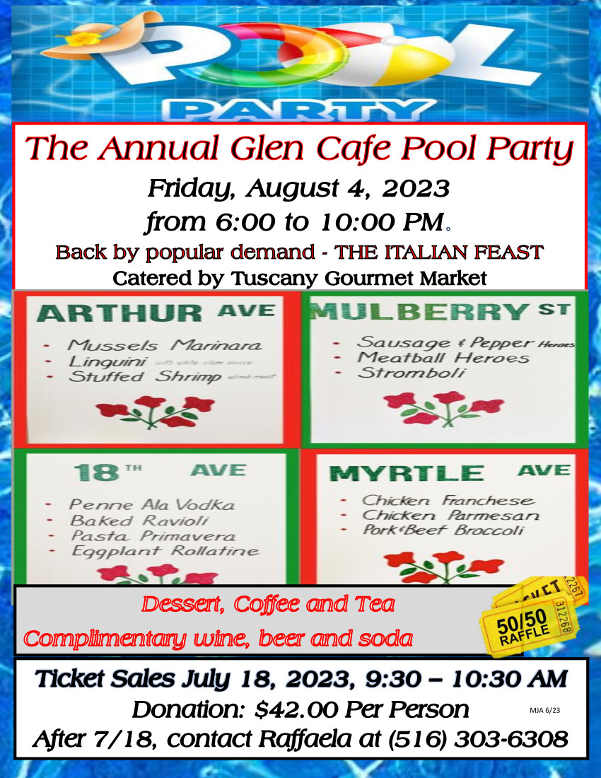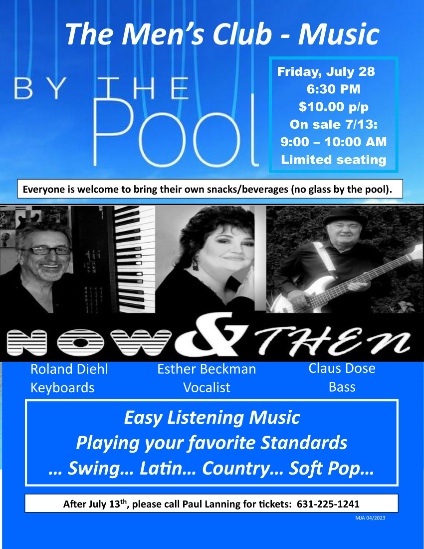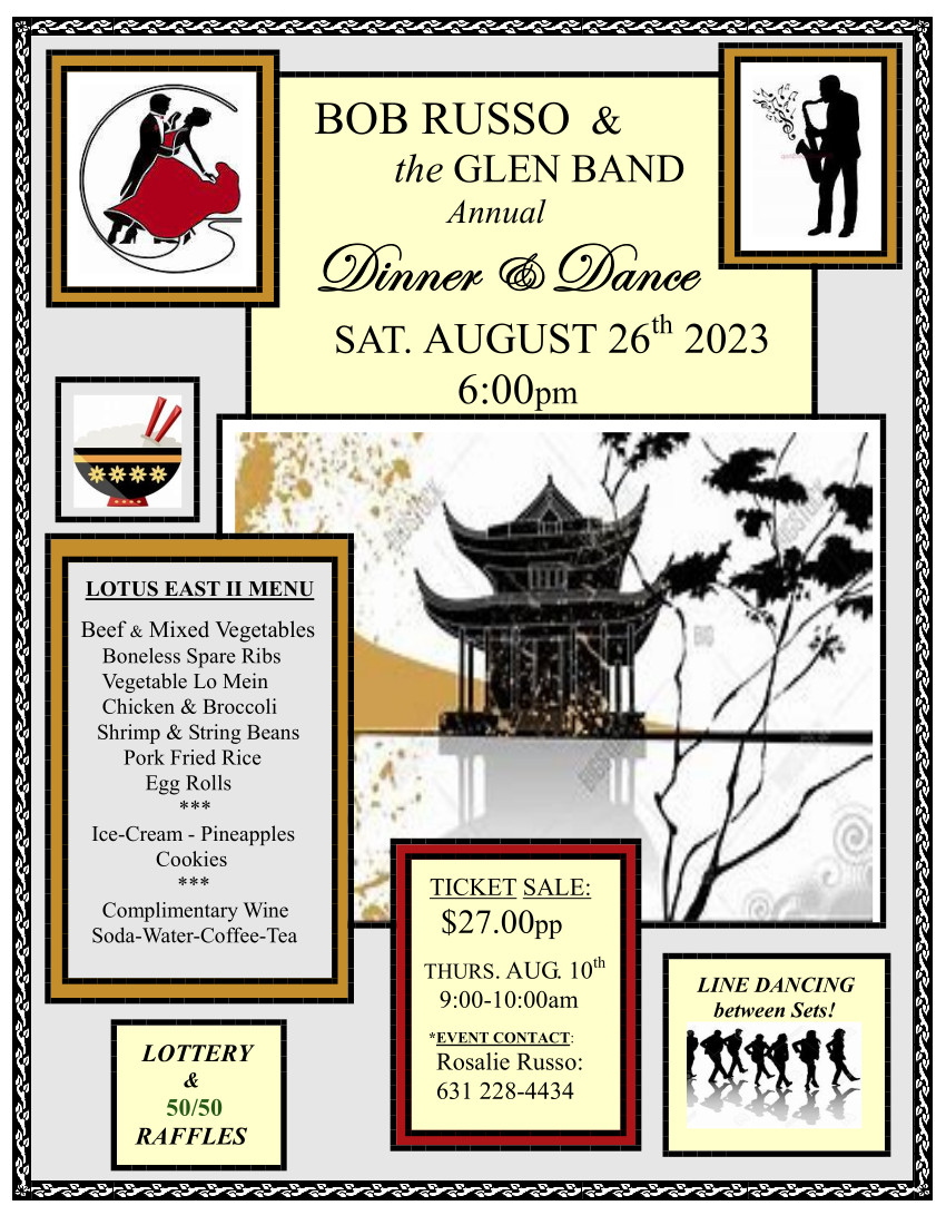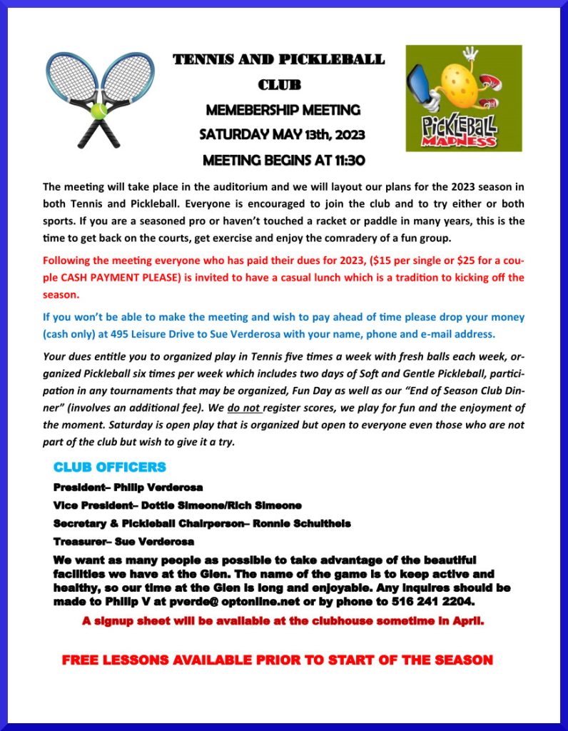 2023 Event Flyers 2024 Event Flyers New Year's Eve Party 12/31 Garden Club Holiday Project 12/4 Women's Guild Wrap Day 12/12 Annual Hanukkah Celebration 12/11 Trim-A-Tree 12/05 Casino Trip 11/29 Computer Club 11/21 Date Changed Holiday Concert 11/19 OTT Doo-Wop Show 11/18 Garden Club Meeting 11/16 Social Club Meeting & Elections 11/16 Glen Cafe Meeting/Elections 11/15 W.G. Game Day 11/14 Night at the Races 11/11 Veterans's Day Ceremony 11/11 Members Only Breakfast 11/09 Italian American Club 11/08 Theater Club 11/08 Defensive Driving 11/08 W.G. Food Drive 11/02 Halloween Party 10/28 Flu Shots Available 10/18 Pizza Game Day 10/17 Garden Club 10/12 Lucille Ball Talk 10/11 Travel Club to Cape Cod 10/9 Columbus Day Dinner/Dance 10/07 Theater Club Meeting 10/03 Theater "Finally Famous" 9/28-10/01 Food Truck Returns! 9/28 On The Town 9/21 Relax by the Pool Starting 9/18 W.G. Fashion Show 9/19 I/A Open Mic Nite 9/16 Open Resident Mtg 9/14 Mister Softee Returns! 9/13 Italian/American Club 9/12 Pottery Starts 9/11 Arts & Crafts Show 9/10 Garden Club 9/07 Italian/American Concert 9/01 Food Truck 8/31 Mister Softee 8/30 Bingo Election Meeting 8/28 Russo Dinner Dance 8/26 Weds. Ladies Bocce starts 8/23 OTT Member Appreciation 8/17 W.G. Game Day 8/15 Night at the Races 8/12 Pool Party 8/04 Men's Bocce & Horseshoes 8/03 Theater Club 8/01 Music by the Pool 7/28 Italian American Club 7/20 On The Town 7/19 Garden Club Lunch 7/13 Theater Club 7/05 On The Town Cruise 6/24 Movie by the Pool 6/23 Meet the Board 6/22 Ice Cream Game Day 6/20 Travel Club Belmont Trip 6/15 Italian/American Club 6/13 Computer Club 6/13 Garden Club Plant Sale 6/08 2023 B.O.D. election notice 6/07 Theater Club 6/06 Art Show 6/04 Pasta Night 6/02 Strawberry Festival 6/01 Memorial Day Celebration 5/30 Game Show Night 5/27 Calverton Flag Placing 5/27 (removing flags 6/03) Heart Attack Care 5/26 Life Plan Seminar 5/23 On The Town Trip 5/19 Game Day 5/16 Tennis/Pickleball Mtg 5/13 Garden Club 5/11 Lawn Treatments 5/2 & 5/3 Women's Guild Luncheon 4/18 On The Town Trip 4/16 Night at the Races 4/15 Garden Club 4/13 Arthritis Seminar 4/12 Theater Production 4/01 Defensive Driving 3/29 Afternoon Movie 3/24 Game Day 3/21 St. Patrick's Day Party 3/18 Optimum Renewal Meeting 3/16 Computer Club 3/14 Quilting Demo 3/09 Theater Club 3/07 Afternoon Movie 2/24 Wind Creek Casino 2/23 Game Day 2/21 Social Club Pajama Party 2/19 Computer Club 2/14 Theater Club 2/7 Auditorium Closed 1/21 - 2/3 Computer Club 1/10 2022 Flyers