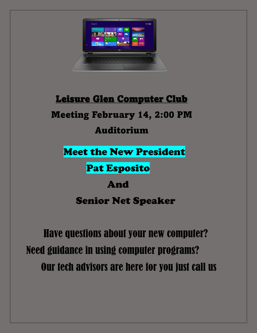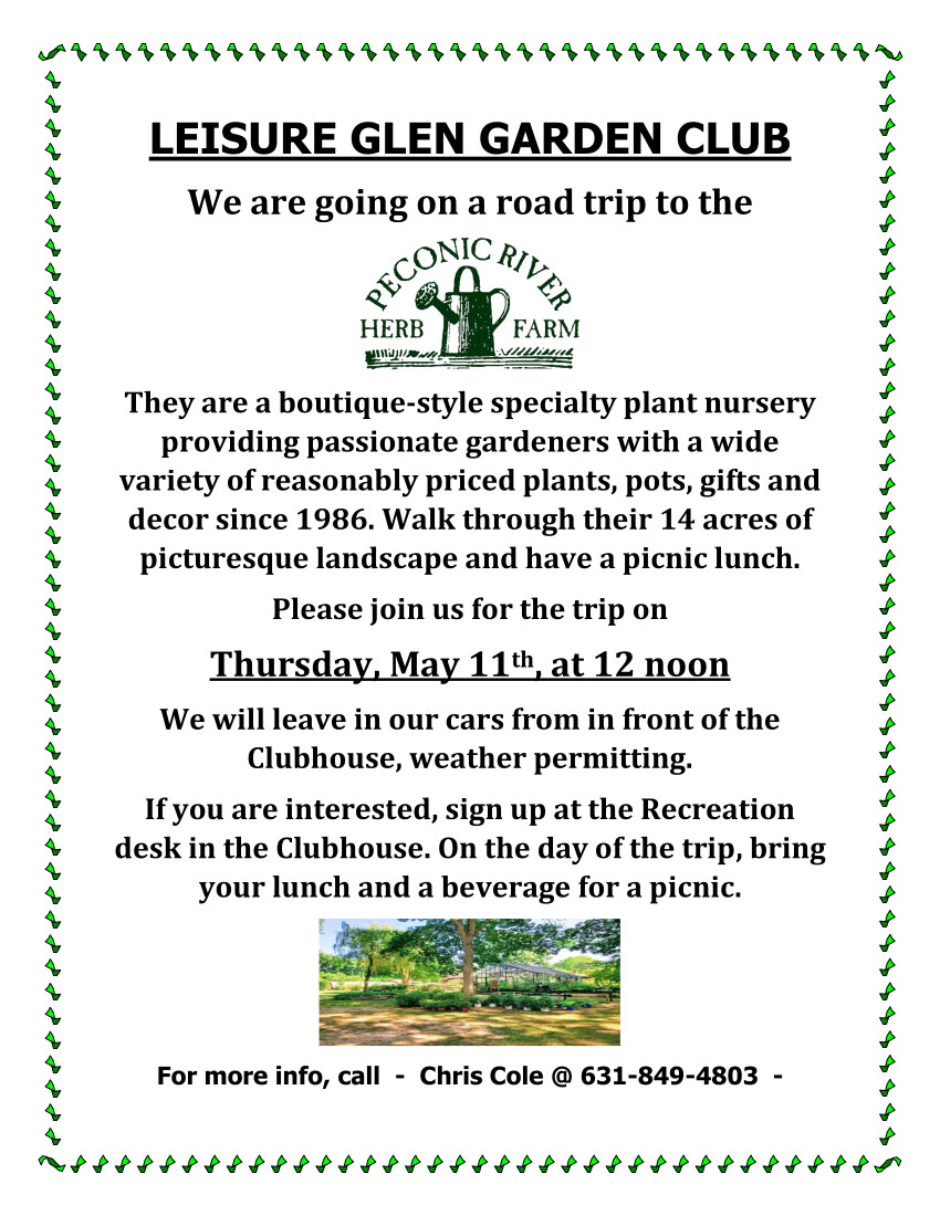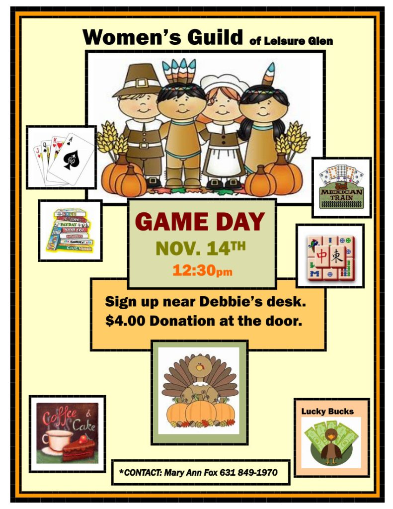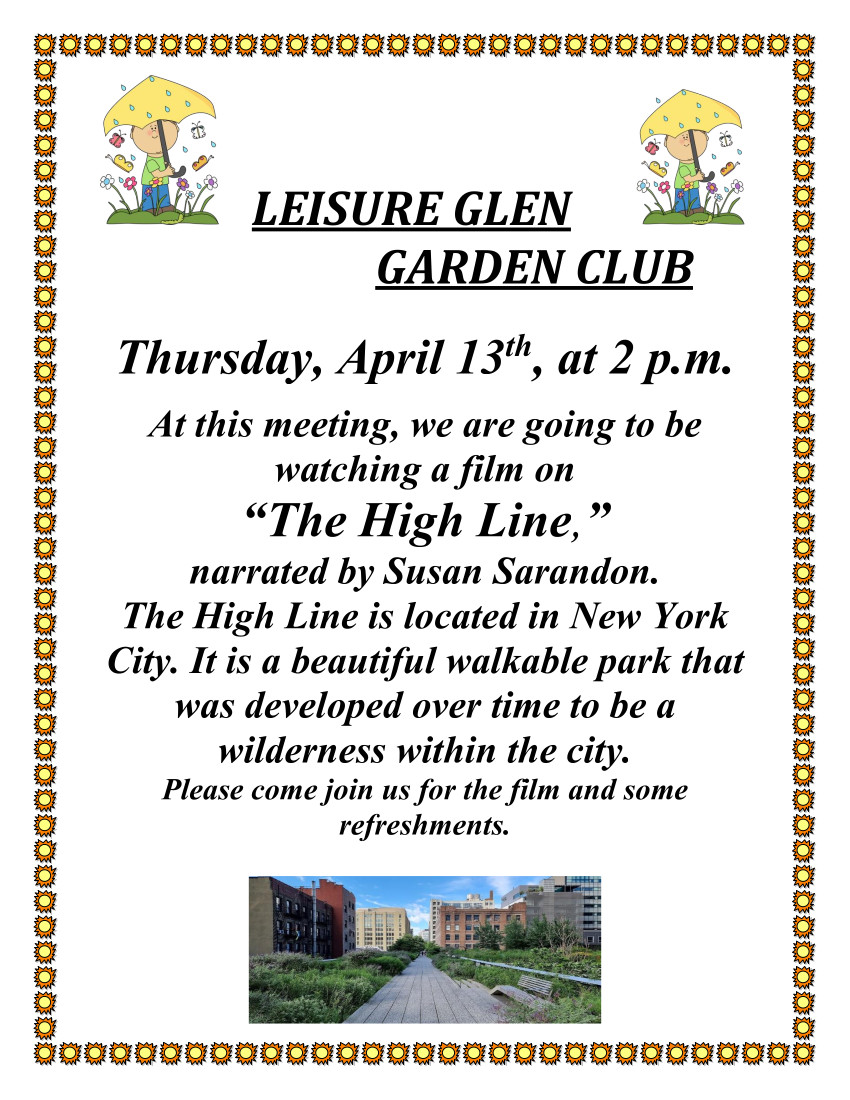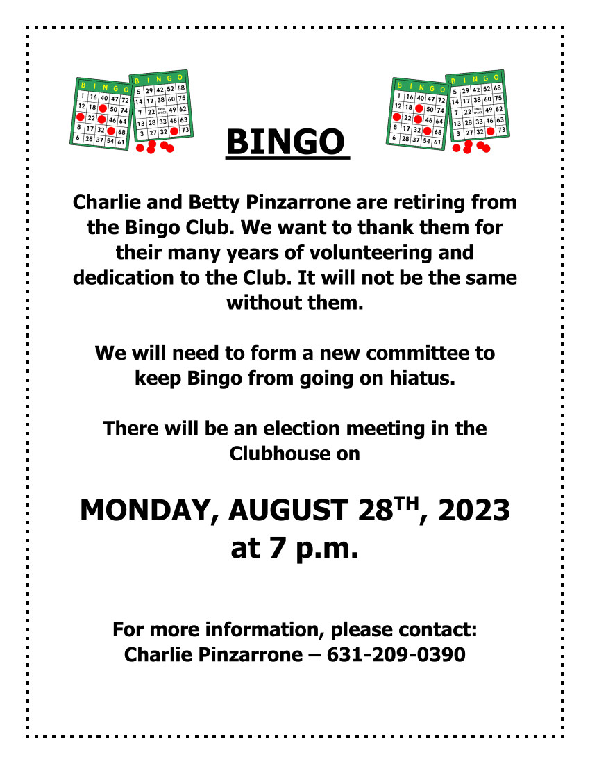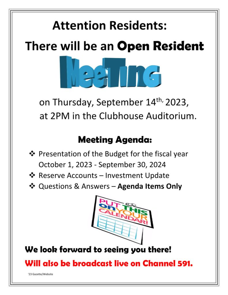 2023 Event Flyers 2024 Event Flyers New Year's Eve Party 12/31 Garden Club Holiday Project 12/4 Women's Guild Wrap Day 12/12 Annual Hanukkah Celebration 12/11 Trim-A-Tree 12/05 Casino Trip 11/29 Computer Club 11/21 Date Changed Holiday Concert 11/19 OTT Doo-Wop Show 11/18 Garden Club Meeting 11/16 Social Club Meeting & Elections 11/16 Glen Cafe Meeting/Elections 11/15 W.G. Game Day 11/14 Night at the Races 11/11 Veterans's Day Ceremony 11/11 Members Only Breakfast 11/09 Italian American Club 11/08 Theater Club 11/08 Defensive Driving 11/08 W.G. Food Drive 11/02 Halloween Party 10/28 Flu Shots Available 10/18 Pizza Game Day 10/17 Garden Club 10/12 Lucille Ball Talk 10/11 Travel Club to Cape Cod 10/9 Columbus Day Dinner/Dance 10/07 Theater Club Meeting 10/03 Theater "Finally Famous" 9/28-10/01 Food Truck Returns! 9/28 On The Town 9/21 Relax by the Pool Starting 9/18 W.G. Fashion Show 9/19 I/A Open Mic Nite 9/16 Open Resident Mtg 9/14 Mister Softee Returns! 9/13 Italian/American Club 9/12 Pottery Starts 9/11 Arts & Crafts Show 9/10 Garden Club 9/07 Italian/American Concert 9/01 Food Truck 8/31 Mister Softee 8/30 Bingo Election Meeting 8/28 Russo Dinner Dance 8/26 Weds. Ladies Bocce starts 8/23 OTT Member Appreciation 8/17 W.G. Game Day 8/15 Night at the Races 8/12 Pool Party 8/04 Men's Bocce & Horseshoes 8/03 Theater Club 8/01 Music by the Pool 7/28 Italian American Club 7/20 On The Town 7/19 Garden Club Lunch 7/13 Theater Club 7/05 On The Town Cruise 6/24 Movie by the Pool 6/23 Meet the Board 6/22 Ice Cream Game Day 6/20 Travel Club Belmont Trip 6/15 Italian/American Club 6/13 Computer Club 6/13 Garden Club Plant Sale 6/08 2023 B.O.D. election notice 6/07 Theater Club 6/06 Art Show 6/04 Pasta Night 6/02 Strawberry Festival 6/01 Memorial Day Celebration 5/30 Game Show Night 5/27 Calverton Flag Placing 5/27 (removing flags 6/03) Heart Attack Care 5/26 Life Plan Seminar 5/23 On The Town Trip 5/19 Game Day 5/16 Tennis/Pickleball Mtg 5/13 Garden Club 5/11 Lawn Treatments 5/2 & 5/3 Women's Guild Luncheon 4/18 On The Town Trip 4/16 Night at the Races 4/15 Garden Club 4/13 Arthritis Seminar 4/12 Theater Production 4/01 Defensive Driving 3/29 Afternoon Movie 3/24 Game Day 3/21 St. Patrick's Day Party 3/18 Optimum Renewal Meeting 3/16 Computer Club 3/14 Quilting Demo 3/09 Theater Club 3/07 Afternoon Movie 2/24 Wind Creek Casino 2/23 Game Day 2/21 Social Club Pajama Party 2/19 Computer Club 2/14 Theater Club 2/7 Auditorium Closed 1/21 - 2/3 Computer Club 1/10 2022 Flyers