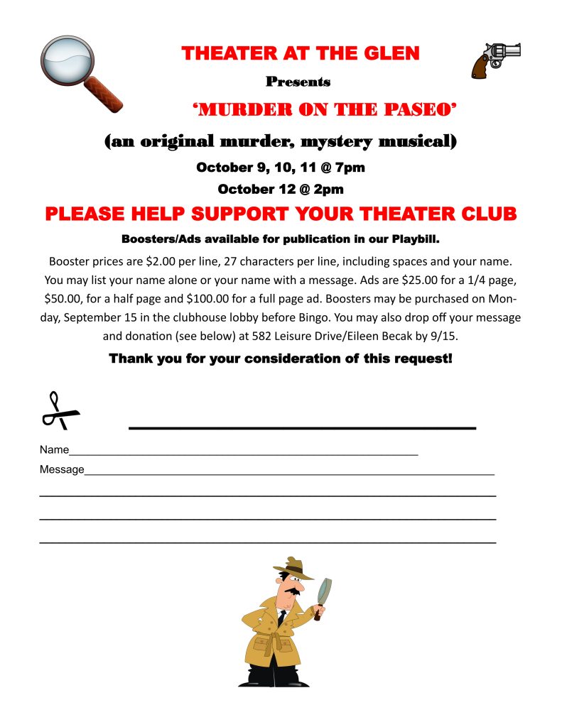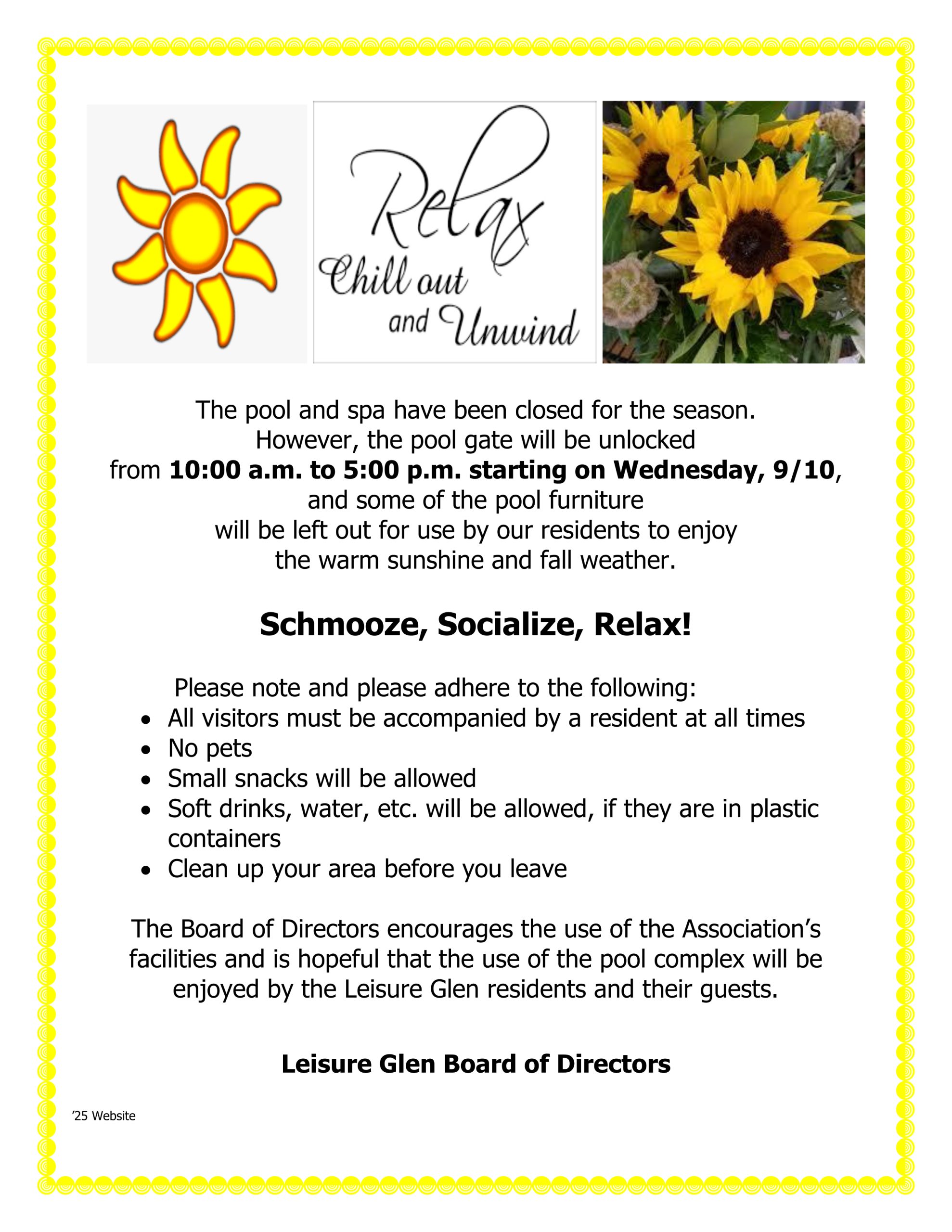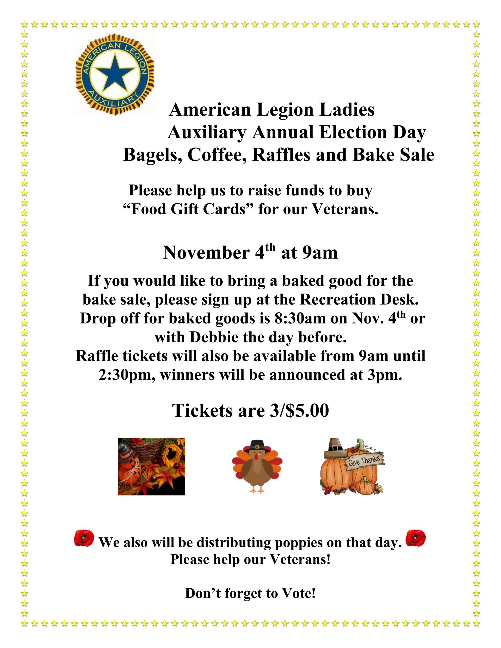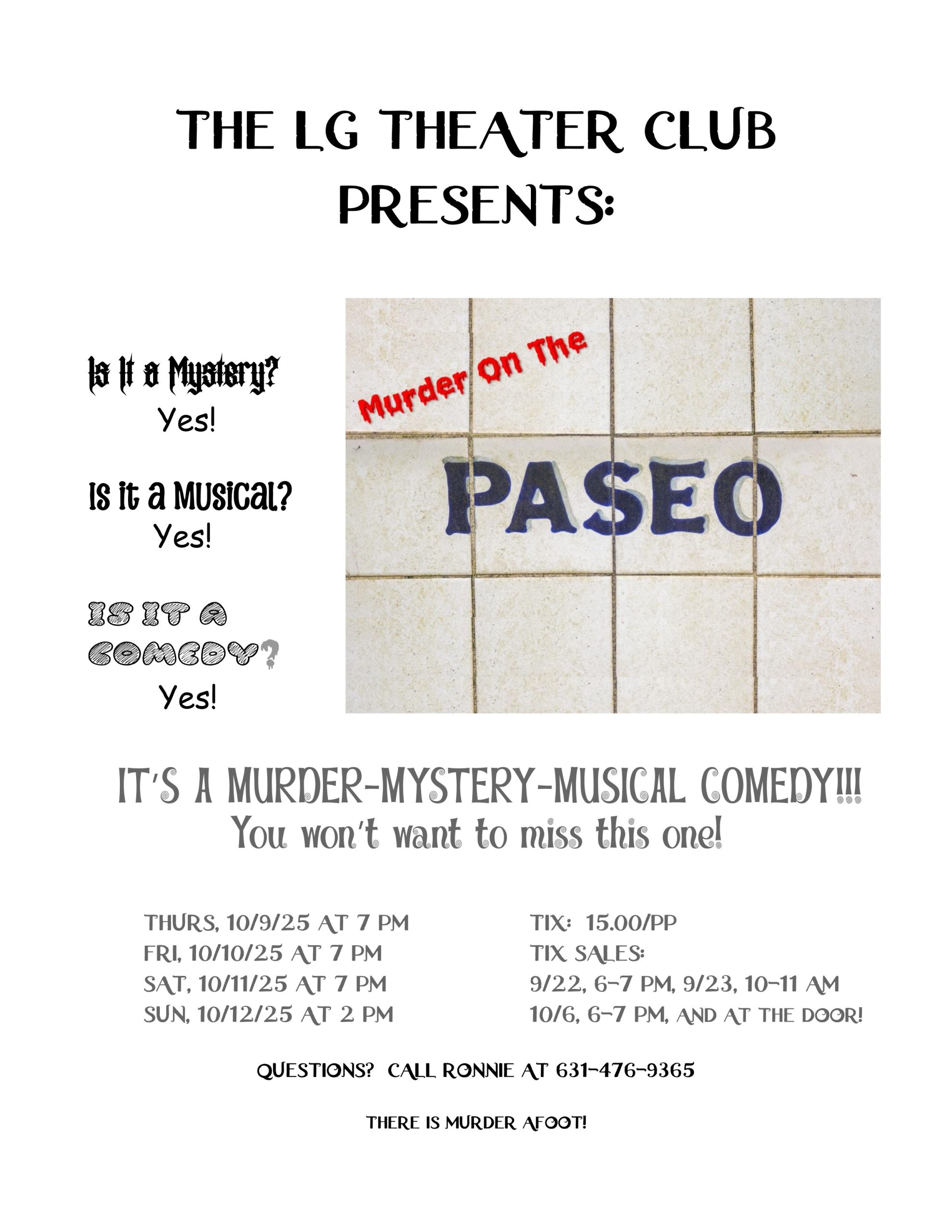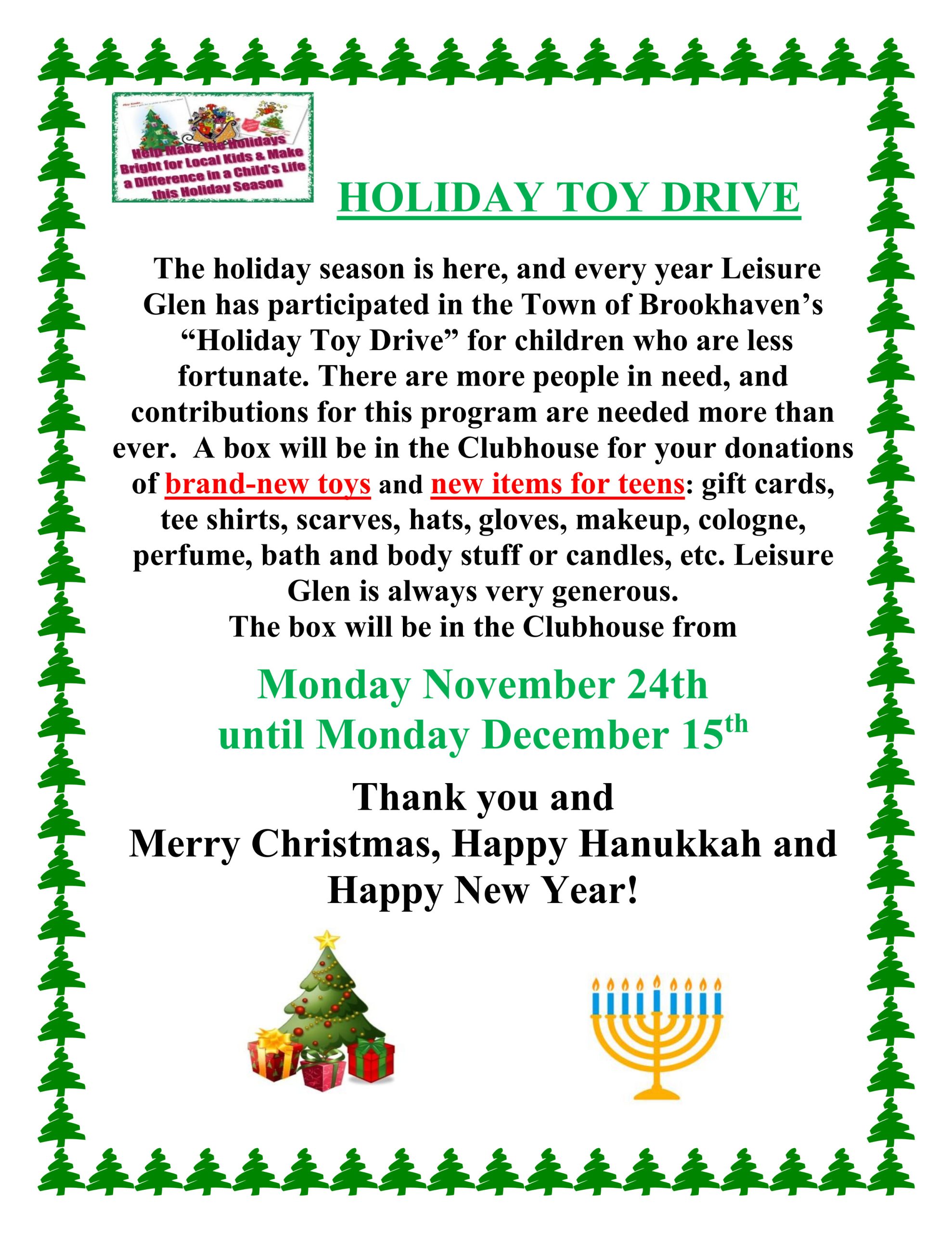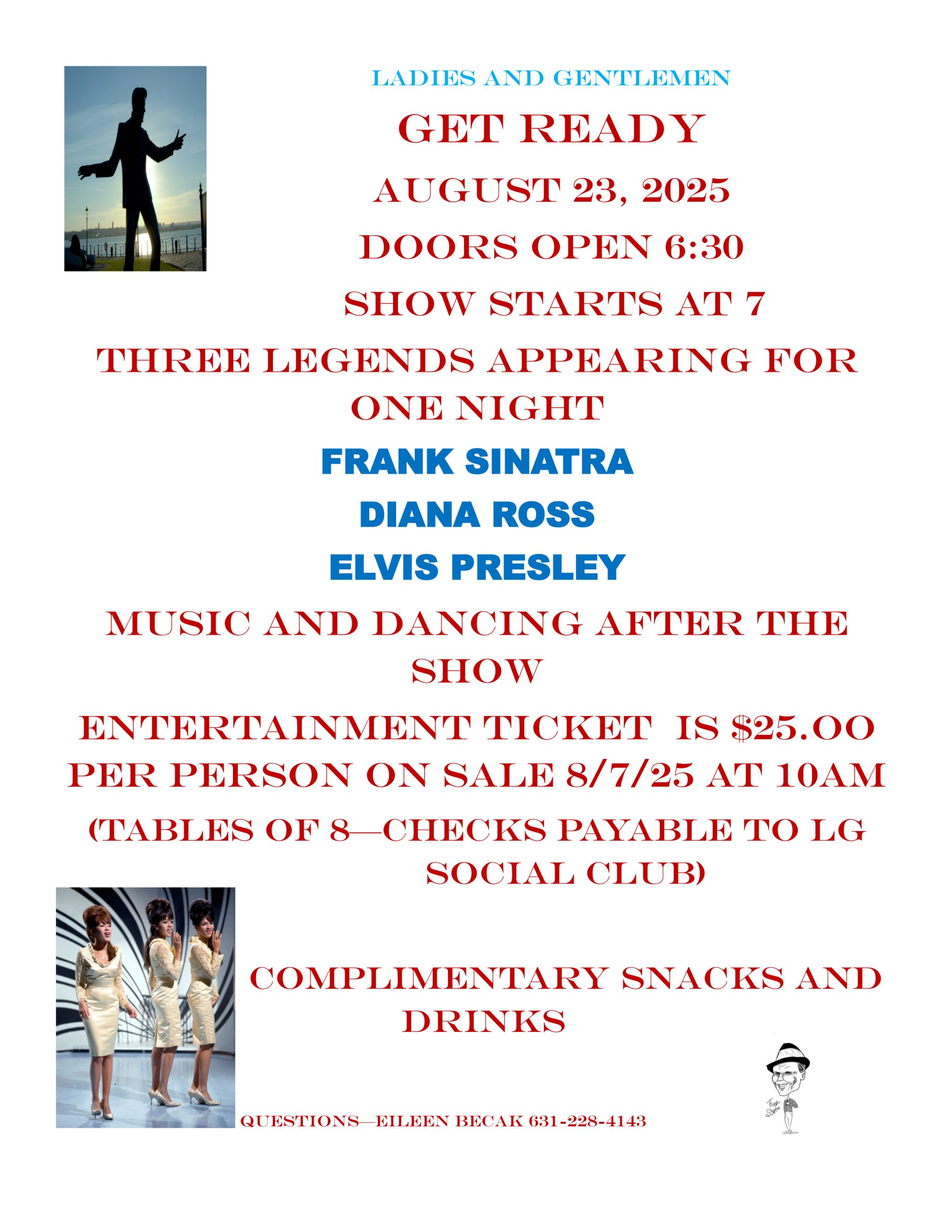 2026 Flyers New Years Eve Party 12/31 Social Club Holiday Party 12/18 Italian American Holiday Party 12/13 Garden Club Holiday Project 12/11 Holiday Giving Board Wrap Day 12/09 Children's Xmas Party 12/07 Trim-A-Tree 12/02 Holiday Tea 11/29 Holiday Toy Drive 11/24 - 12/15 Movie Night 11/21 Social Club Elections 11/19 Defensive Driving 11/12 Nite @ Races 11/08 Community Food Drive 11/06 Theater Club 11/05 Bagels, coffee Bake Sale 11/04 Halloween Party 10/31 Saving Money Ideas 10/29 Evening Movie 10/23 Columbus Day Dinner 10/18 Lawn Treatments 10/16-17 Garden Club 10/16 Theater Show 10/09, 10, 11, 12 Theater Boosters Estate Plan Workshop 9/30 Glen Cafe Oktoberfest 9/27 2025-2026 Budget Presentation 9/18 Italian American Club 9/12 Fall Fertilizer 9/11 Schmooze, Relax 9/10 September is Membership Month Pottery Class Signup 9/08 Outdoor Concert 8/29 First Friday 8/01 Legends 8/23 Movie Night "Plane" 8/22 Homeowners Insurance Presentation 8/07